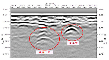 左側(cè)為混凝土管雷達圖像,右側(cè)為高亮金屬管雷達圖像