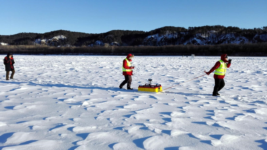 2015年12月,大連中??萍及l(fā)展有限公司與中國水利水電科學(xué)研究院合作,采用中??萍紕?chuàng)新研發(fā)的IGPR-10型冰厚水深綜合探測雷達,在我國北方的河流黑龍江漠河北極村段,成功進行了冰封河流冰厚水深連續(xù)綜合探測,開創(chuàng)性地獲取了高精度河流連續(xù)冰厚水深雷達圖像。通過沿河流中宏線、河流中宏到河岸橫斷線進行的10千米測線的探測作業(yè),IGPR-10型冰厚水深綜合探測雷達性能表現(xiàn)優(yōu)異,冰厚水深探測結(jié)果準(zhǔn)確,作業(yè)快捷,并能夠同步精確坐標(biāo)定位,可在-30度環(huán)境下穩(wěn)定可靠工作。這一創(chuàng)新高新技術(shù)成果為河流冰情基本觀測、河流凌汛預(yù)防預(yù)警和凌汛爆破排險提供了先進的設(shè)備和手段。
